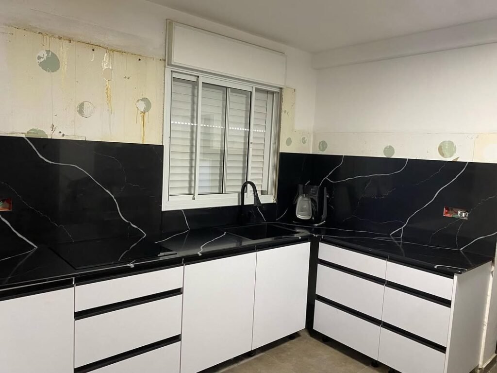 אנחנו עובדים רק עם שיש, גרניט וגרניט פורצלן באיכות גבוהה — כאלה שמחזיקים שנים ונראים מצוין גם אחרי שימוש יומיומי.
